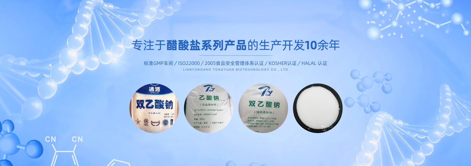 連云港市通源生物科技有限公司 是生產(chǎn)雙乙酸鈉、無(wú)水醋酸鈉、三水醋酸鈉、醋酸鉀、乙酸鈉、丙酸鈉、丙酸鈣和氯化鉀等系類醋酸鹽產(chǎn)品的專業(yè)制造商。公司專注于醋酸鹽系列產(chǎn)品的生產(chǎn)開發(fā)10余年,是國(guó)內(nèi)專業(yè)醋酸酸鹽產(chǎn)品生產(chǎn)基地。 目前,我們已和全球30多個(gè)國(guó)家和地區(qū)建立長(zhǎng)期的業(yè)務(wù)合作關(guān)系,是中國(guó)較大的雙乙酸鈉生產(chǎn)商和出口商之一。作為中國(guó)食品添加劑和配料協(xié)會(huì)理事單位,通源公司已建成標(biāo)準(zhǔn)GMP車間5000余平方米,通過了ISO22000:2005食品安全管理體系認(rèn)證、KOSHER認(rèn)證、HALAL 認(rèn)證等,這些都是我們提供高質(zhì)量產(chǎn)品和優(yōu)良服務(wù)的前提和確保。 生產(chǎn)出色產(chǎn)品,提供優(yōu)良服務(wù),滿足顧客需要,是我們努力的目標(biāo)。愿和我們的朋友們攜手,共...